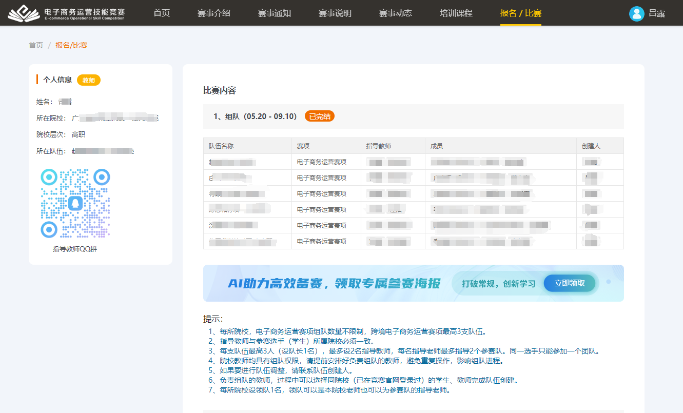 1. 指导老师和参赛队员登录账号